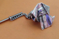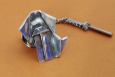 Its my classic origami dog pattern, folded from sheets of .999 fine silver, and turned into a tie tack. Each origami item is folded by hand, then kiln fired, lightly antiqued to bring out the detail, and polished.