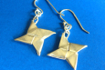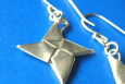 Looking for somerthing origami, and a little more wild? Its a pair of ninja throwing stars, or shuriken, made into earrings. Stars are 1/2 inch across, and filed down so as to not be pointy.
